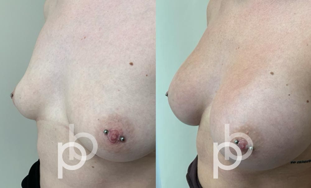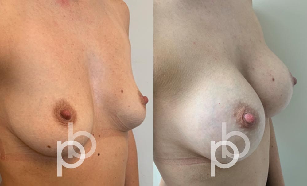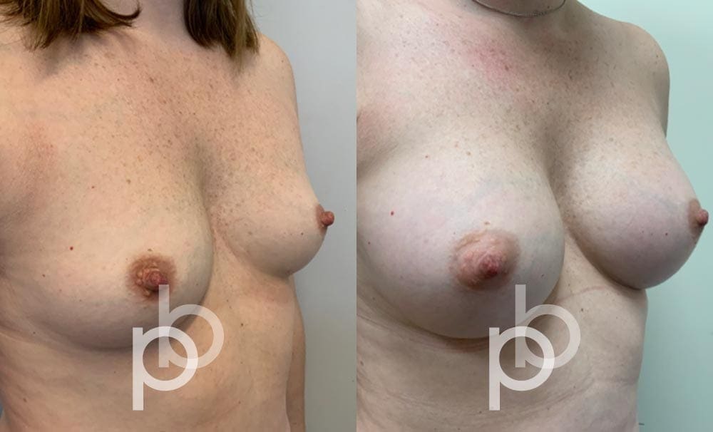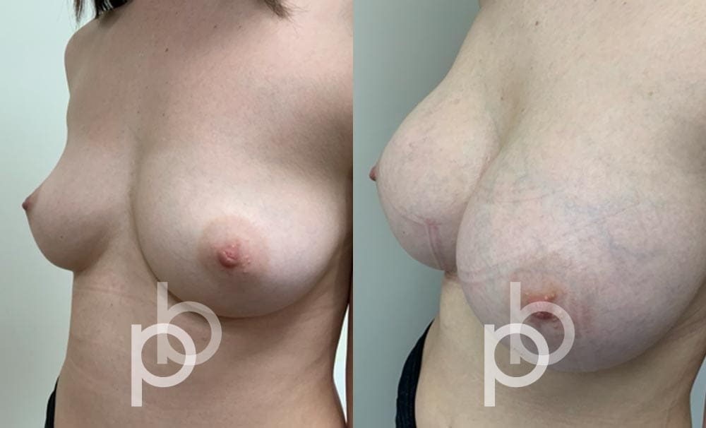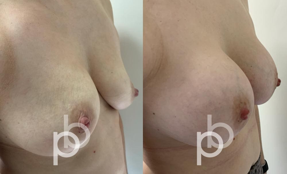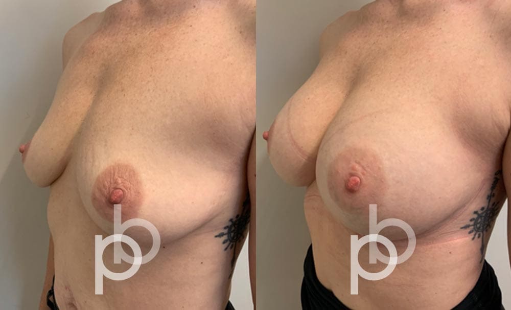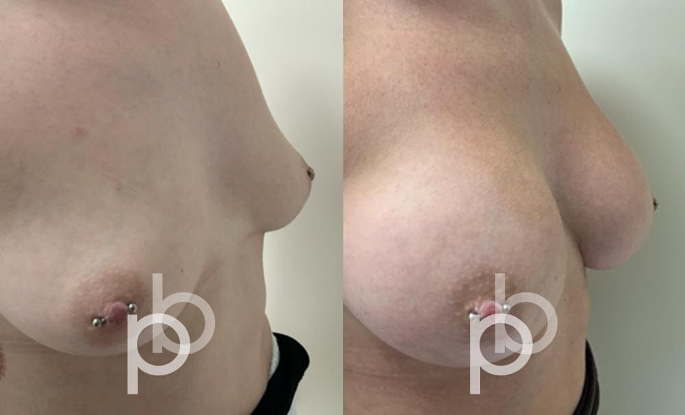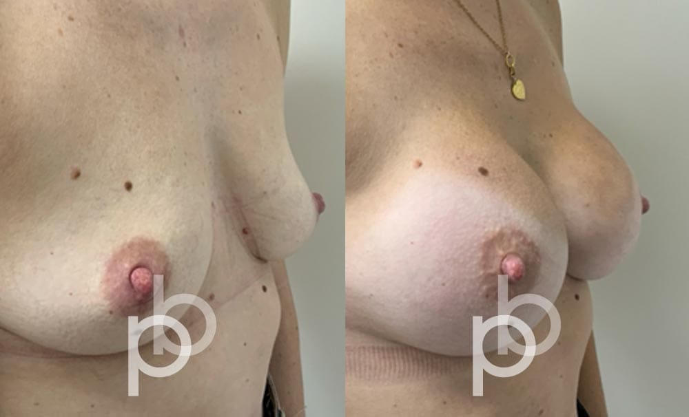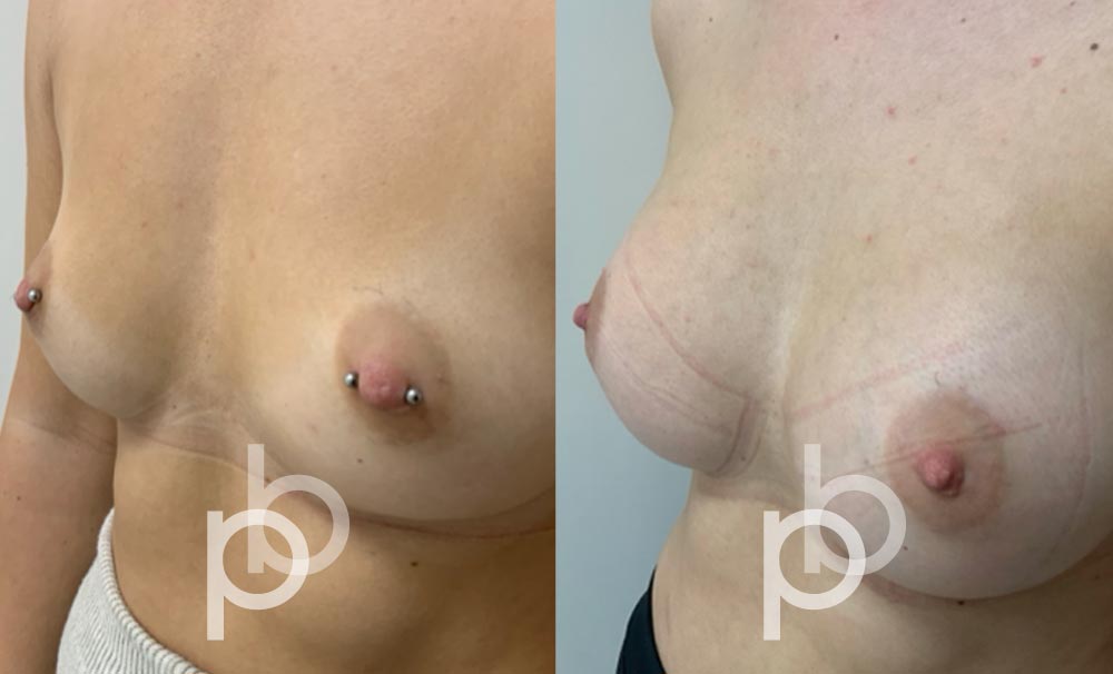 The insertion of an implant will make the breast appear larger and fuller. Mr Banwell is a specialist in breast augmentation and would be happy to discuss your aims and objectives with you – we believe in a bespoke approach to all breast enhancement surgeries using either implants alone, fat transfer alone or a combination of both (Mr Banwell’s hybrid HYBA technique).