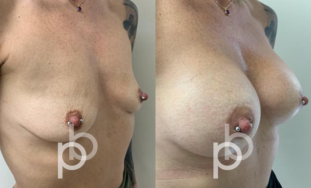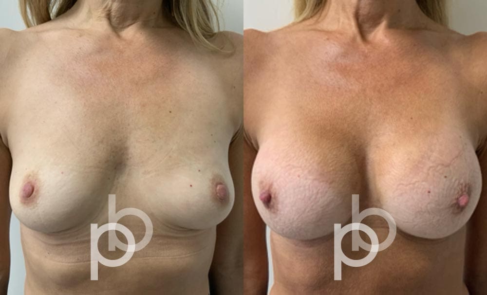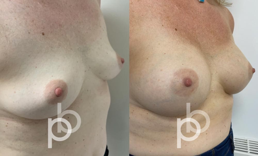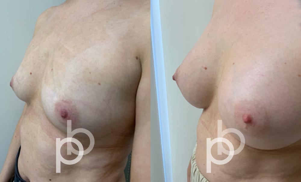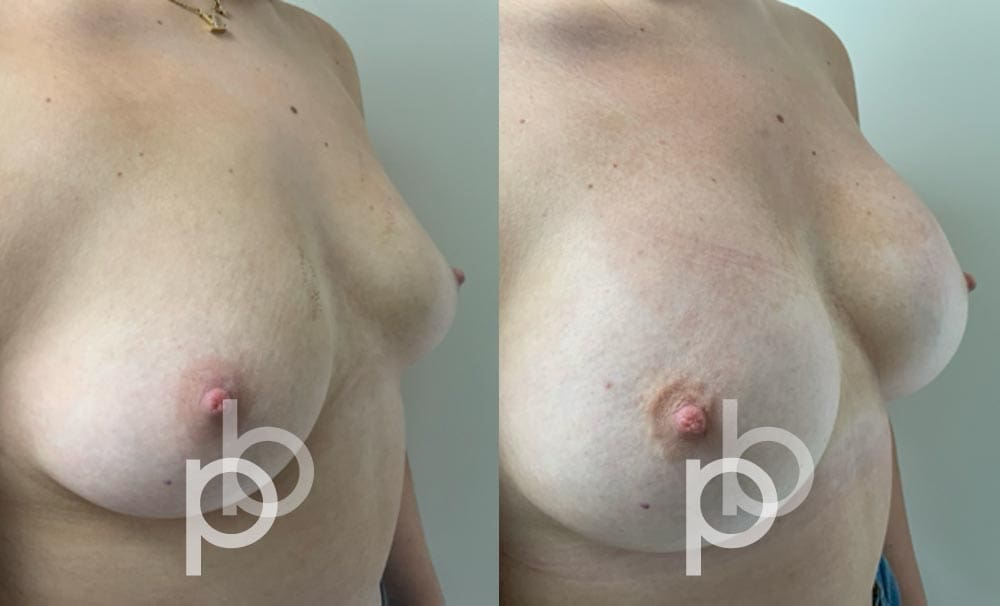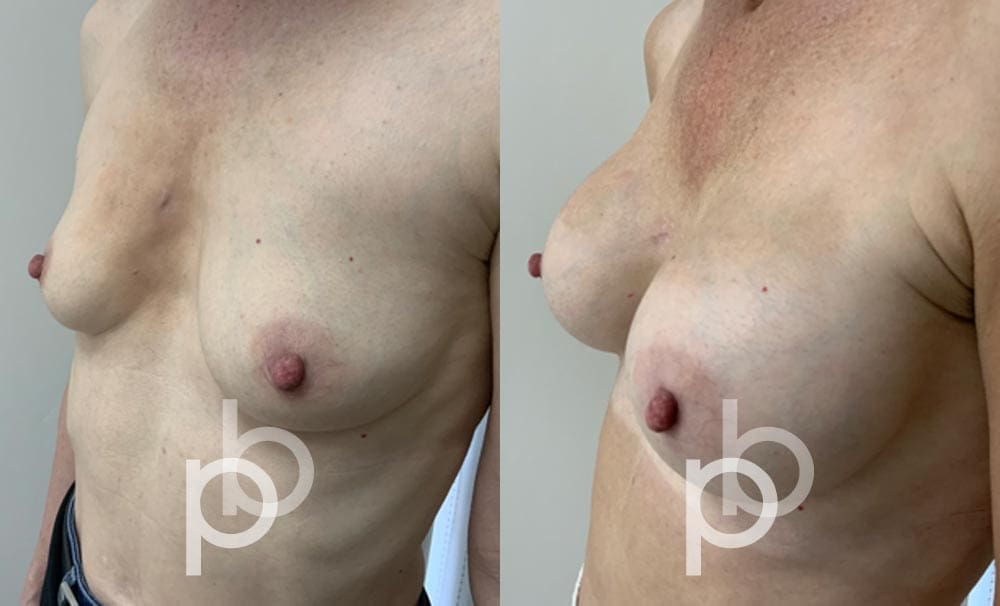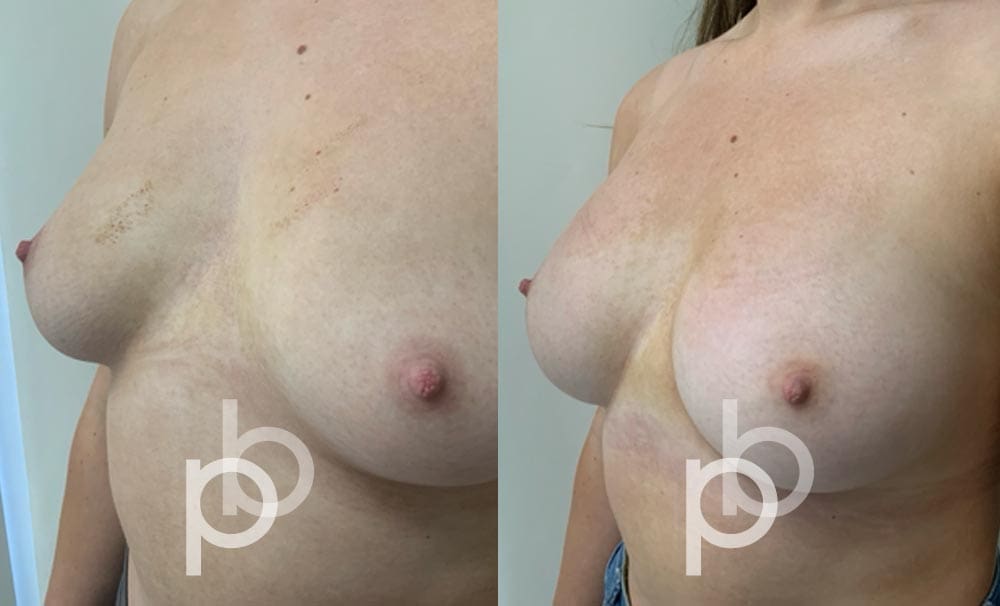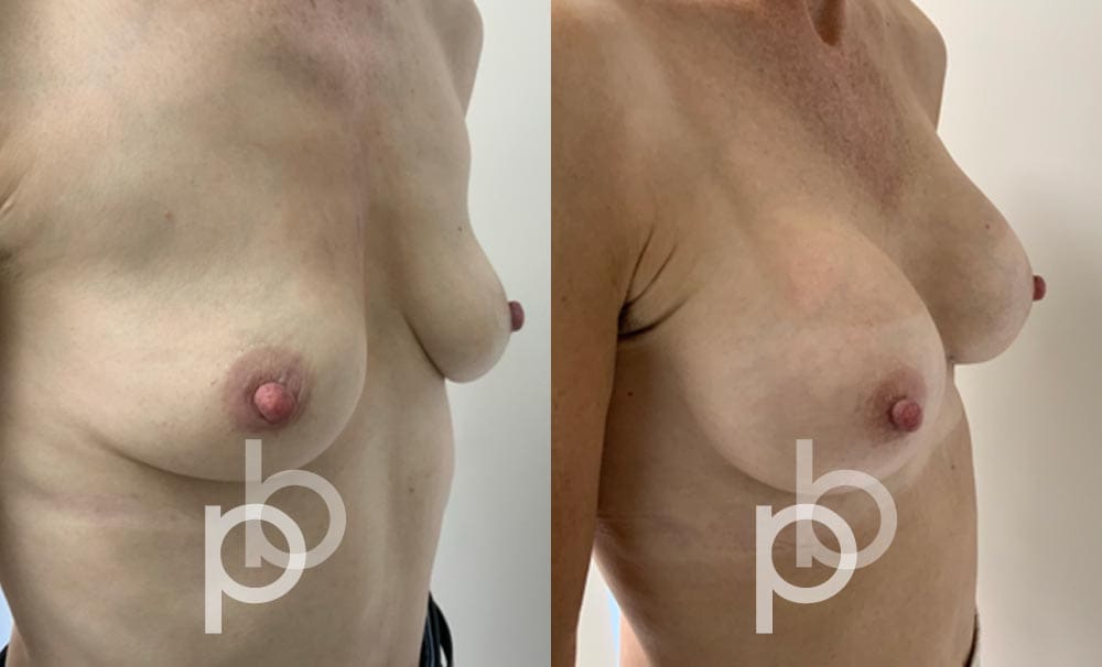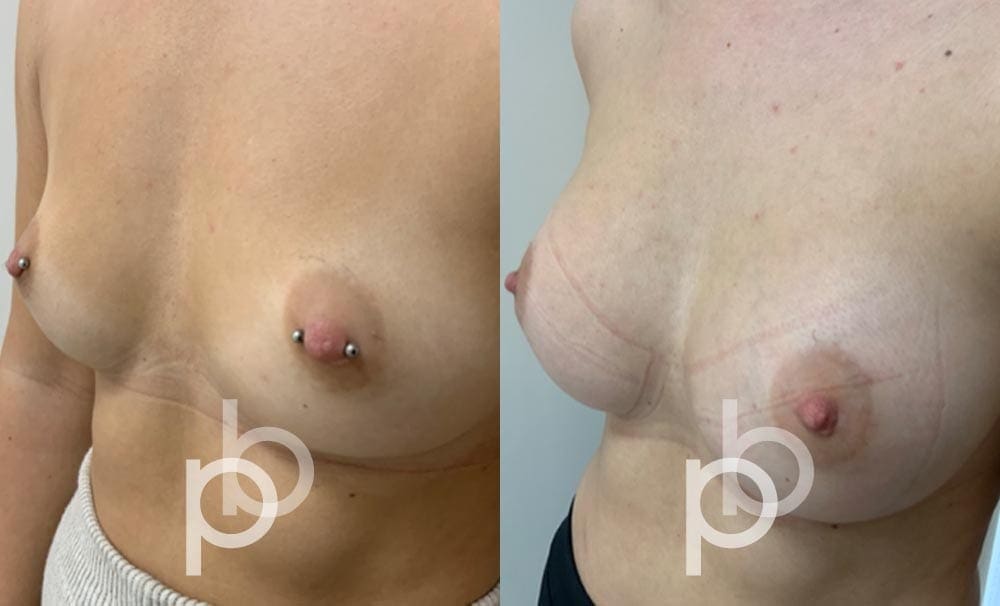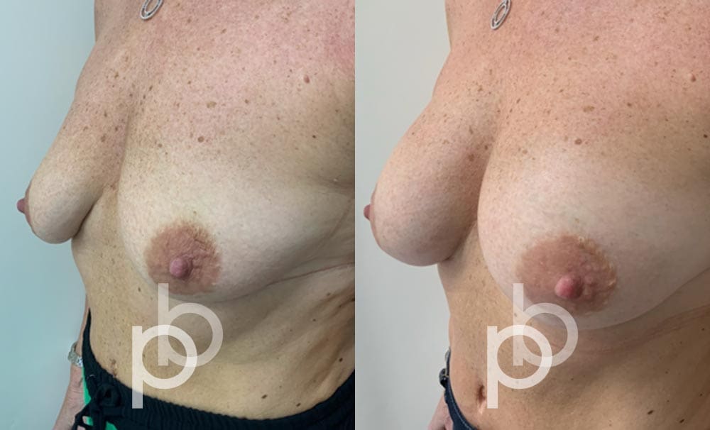 The insertion of an implant will make the breast appear larger and fuller. Mr Banwell is a specialist in breast augmentation and would be happy to discuss your aims and objectives with you – we believe in a bespoke approach to all breast enhancement surgeries using either implants alone, fat transfer alone or a combination of both (Mr Banwell’s hybrid HYBA technique).