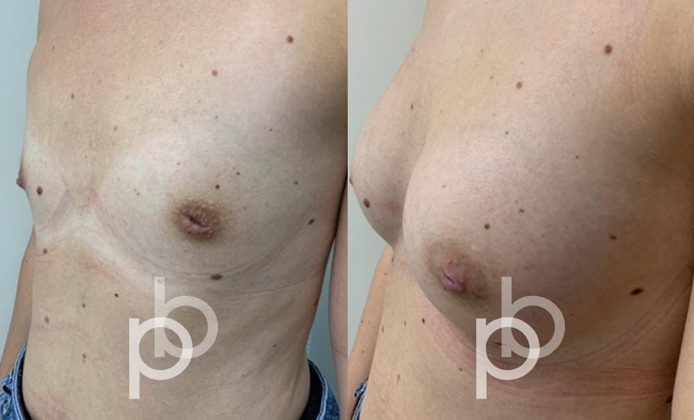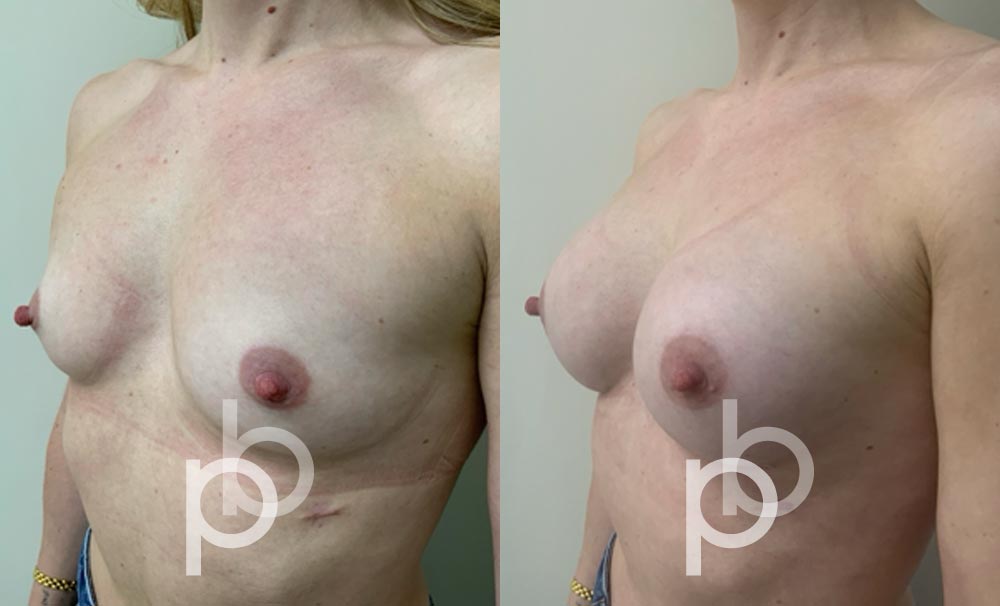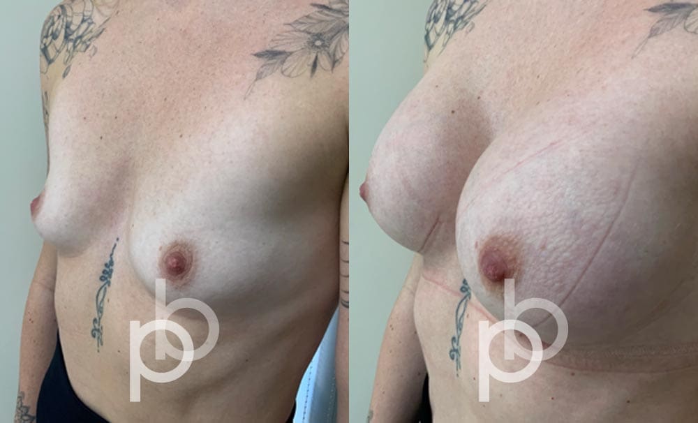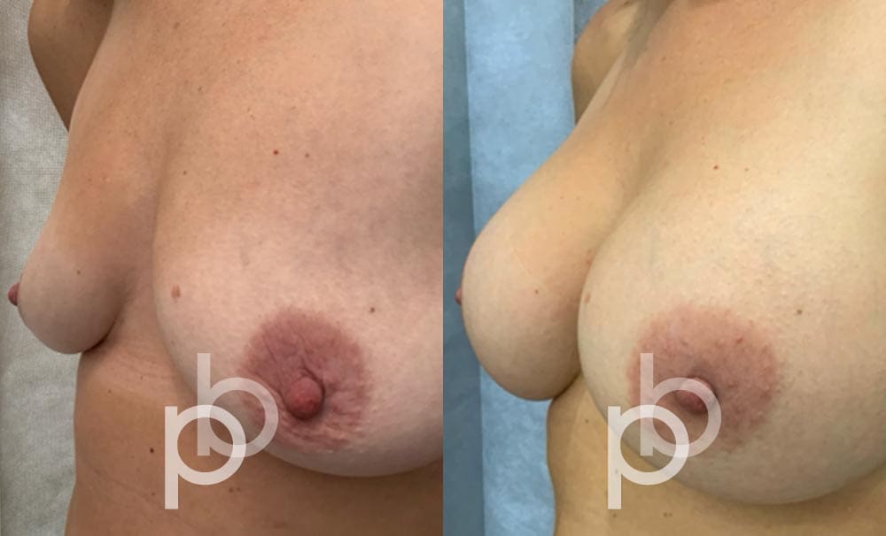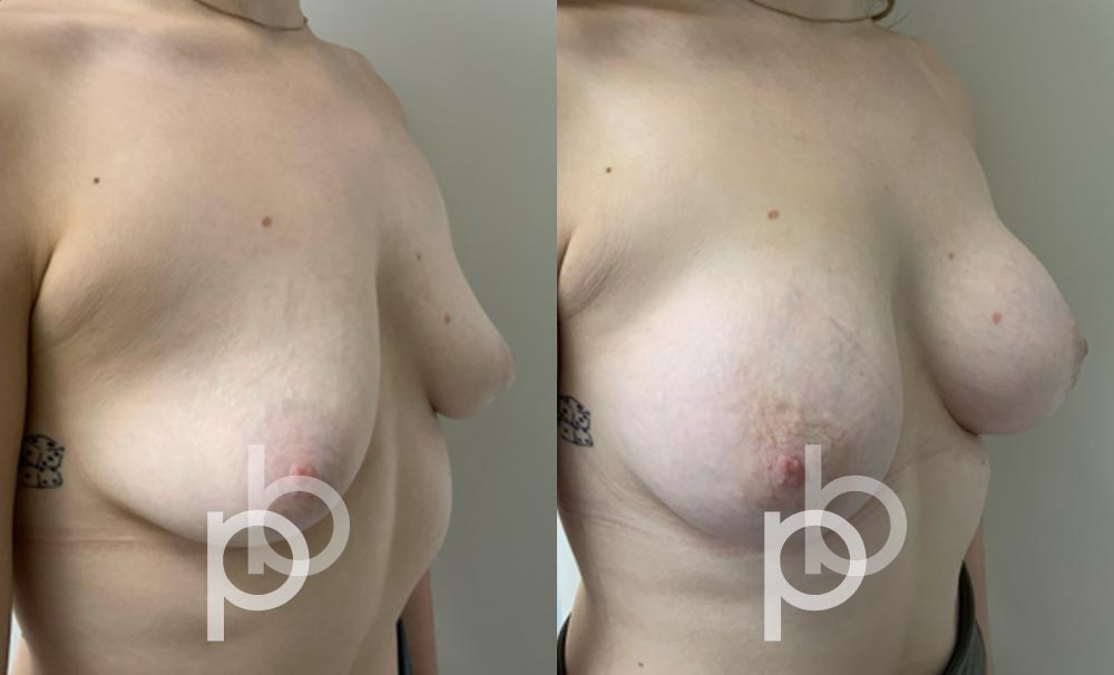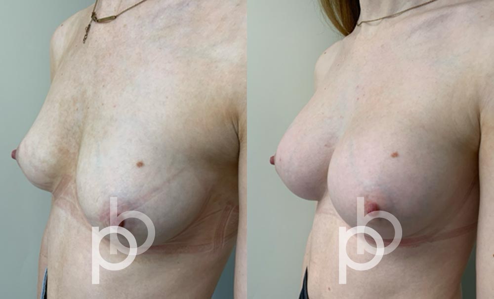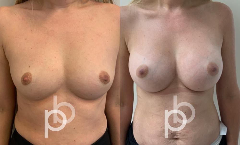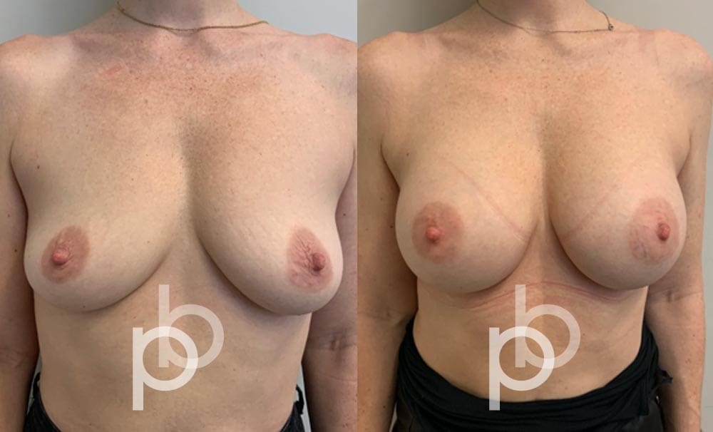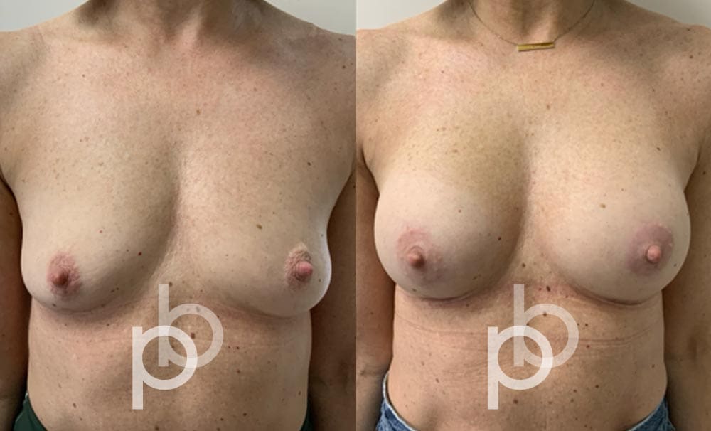 The insertion of an implant will make the breast appear larger and fuller. Mr Banwell is a specialist in breast augmentation and would be happy to discuss your aims and objectives with you – we believe in a bespoke approach to all breast enhancement surgeries using either implants alone, fat transfer alone or a combination of both (Mr Banwell’s hybrid HYBA technique).